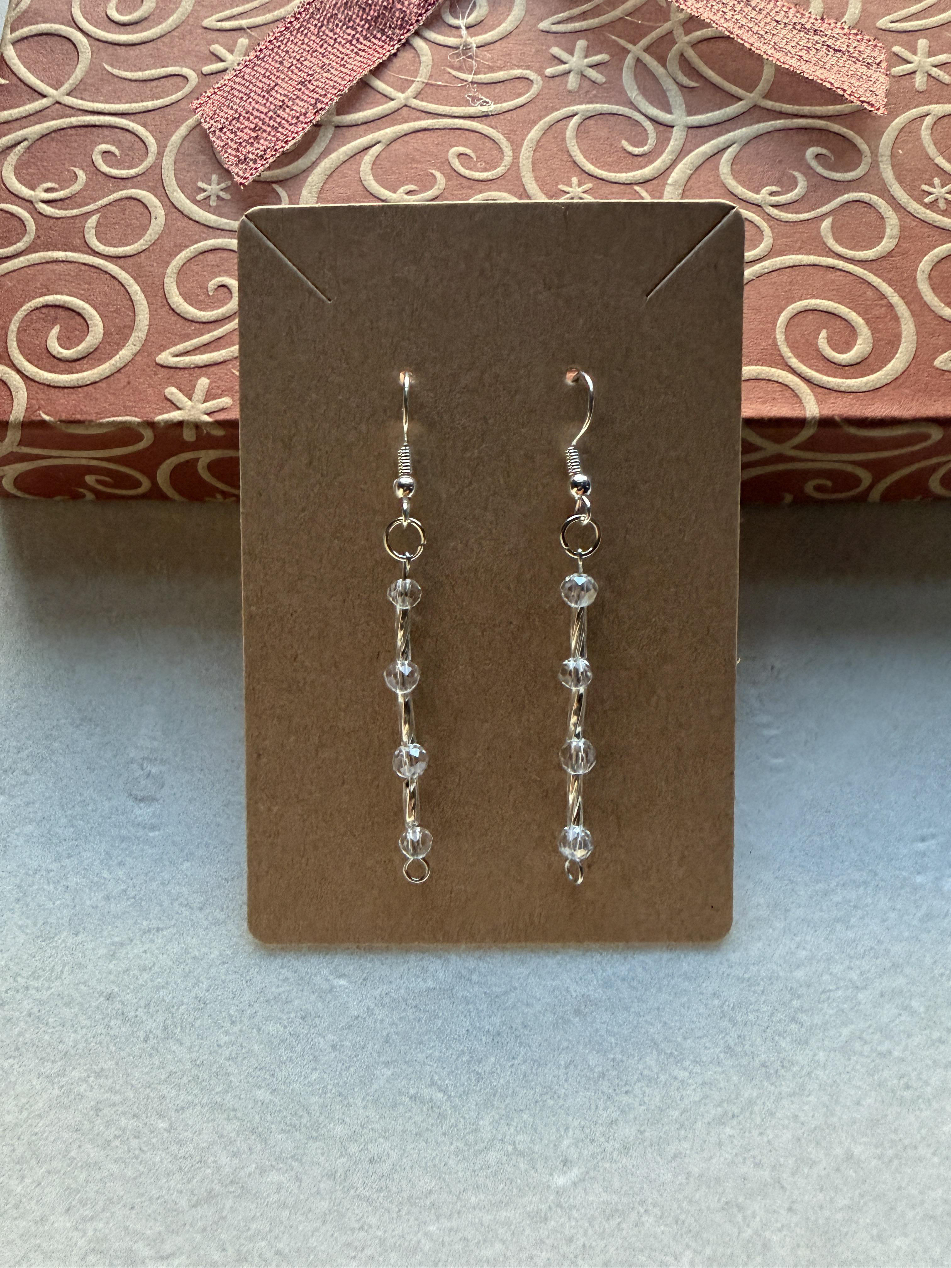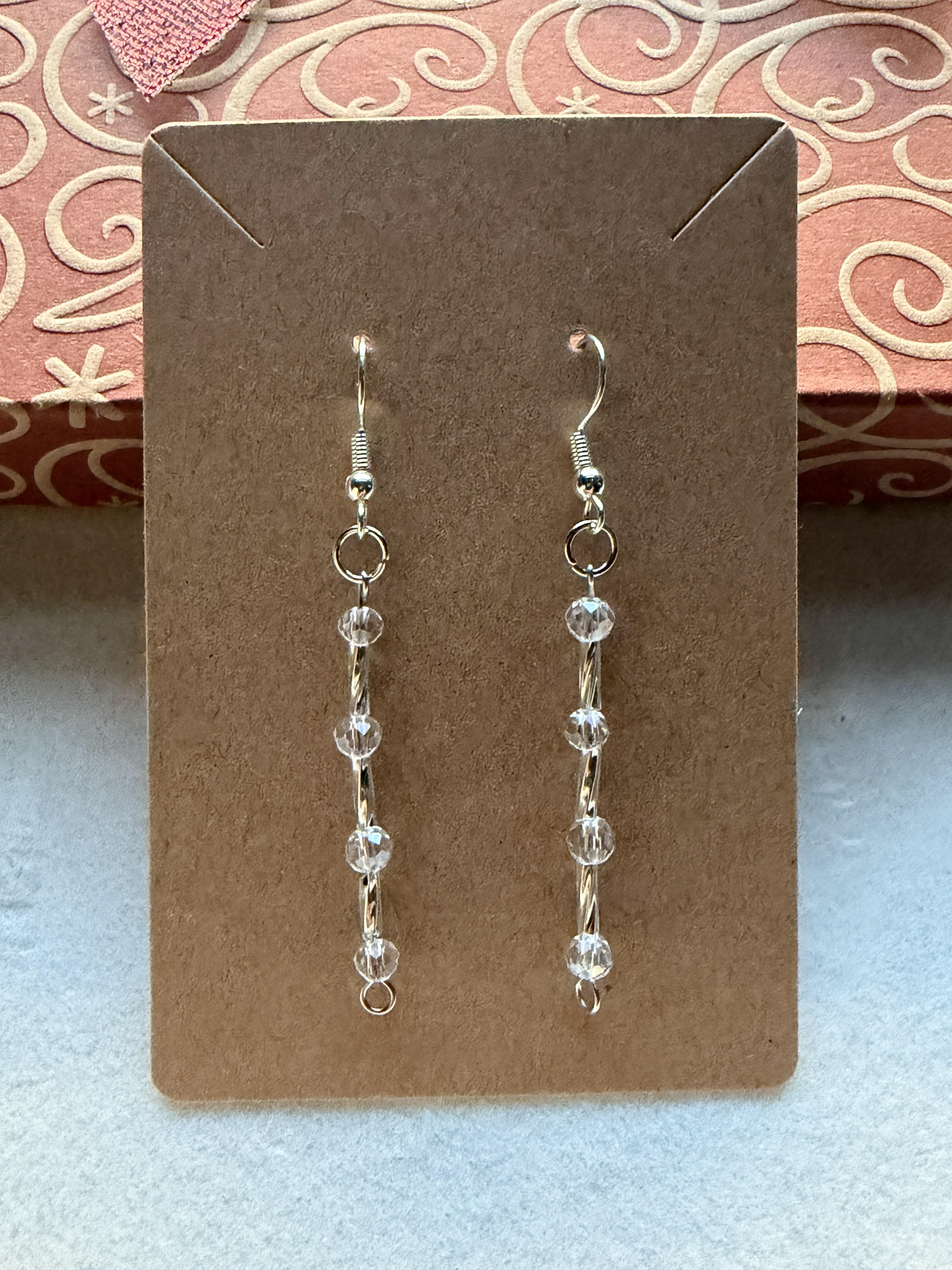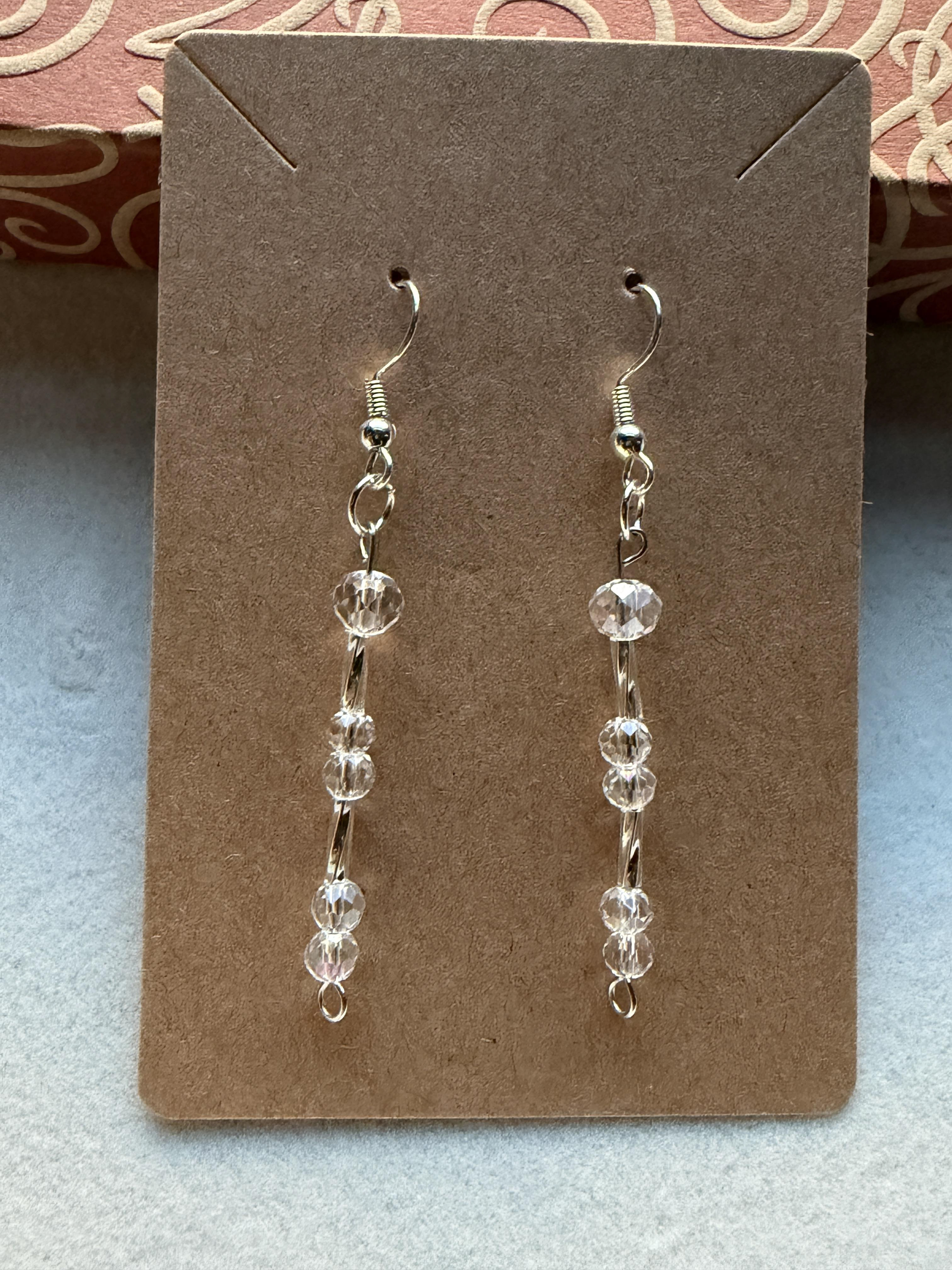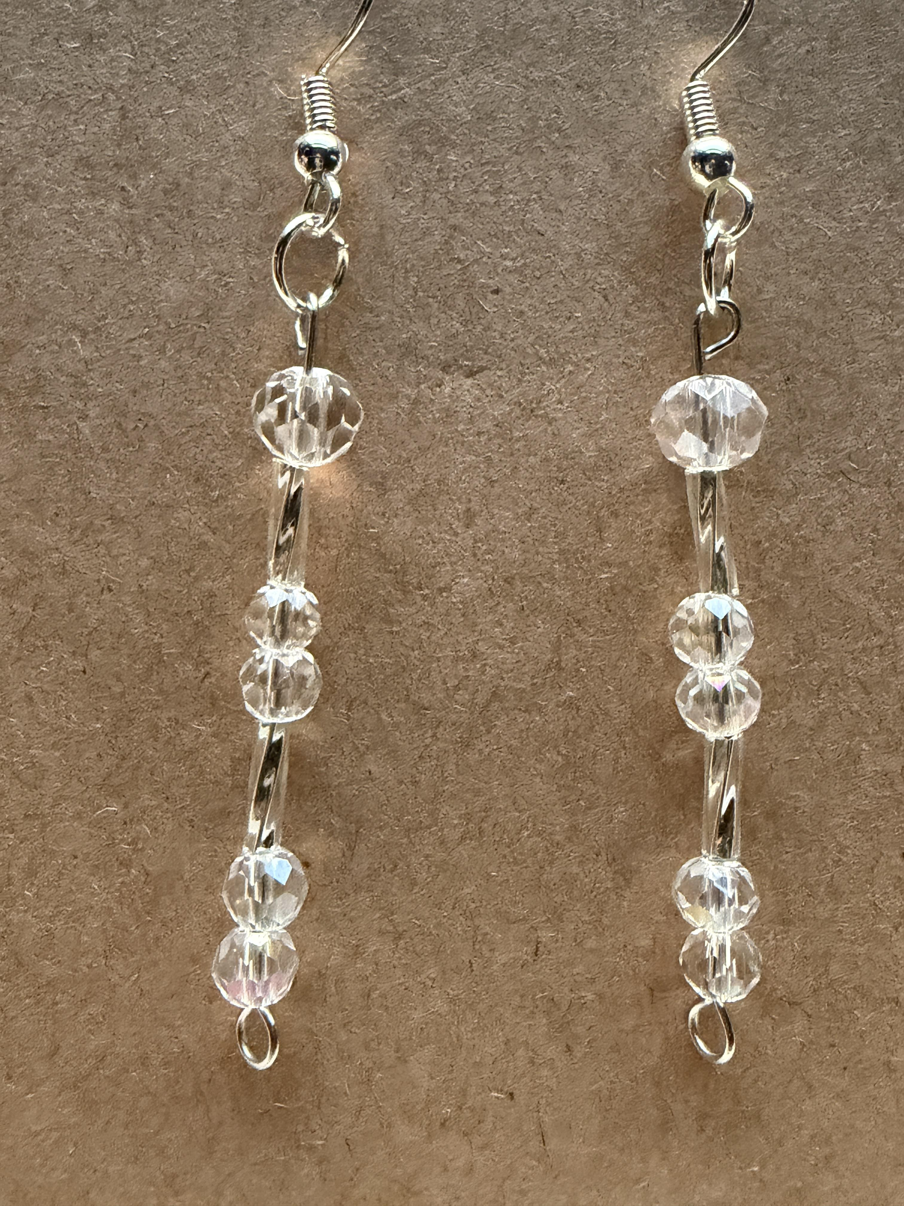 Handmade Small Clear Crystal & Embellished Silver Beaded Earrings on silver hypoallergenic posts with rubber backing Style# 014
