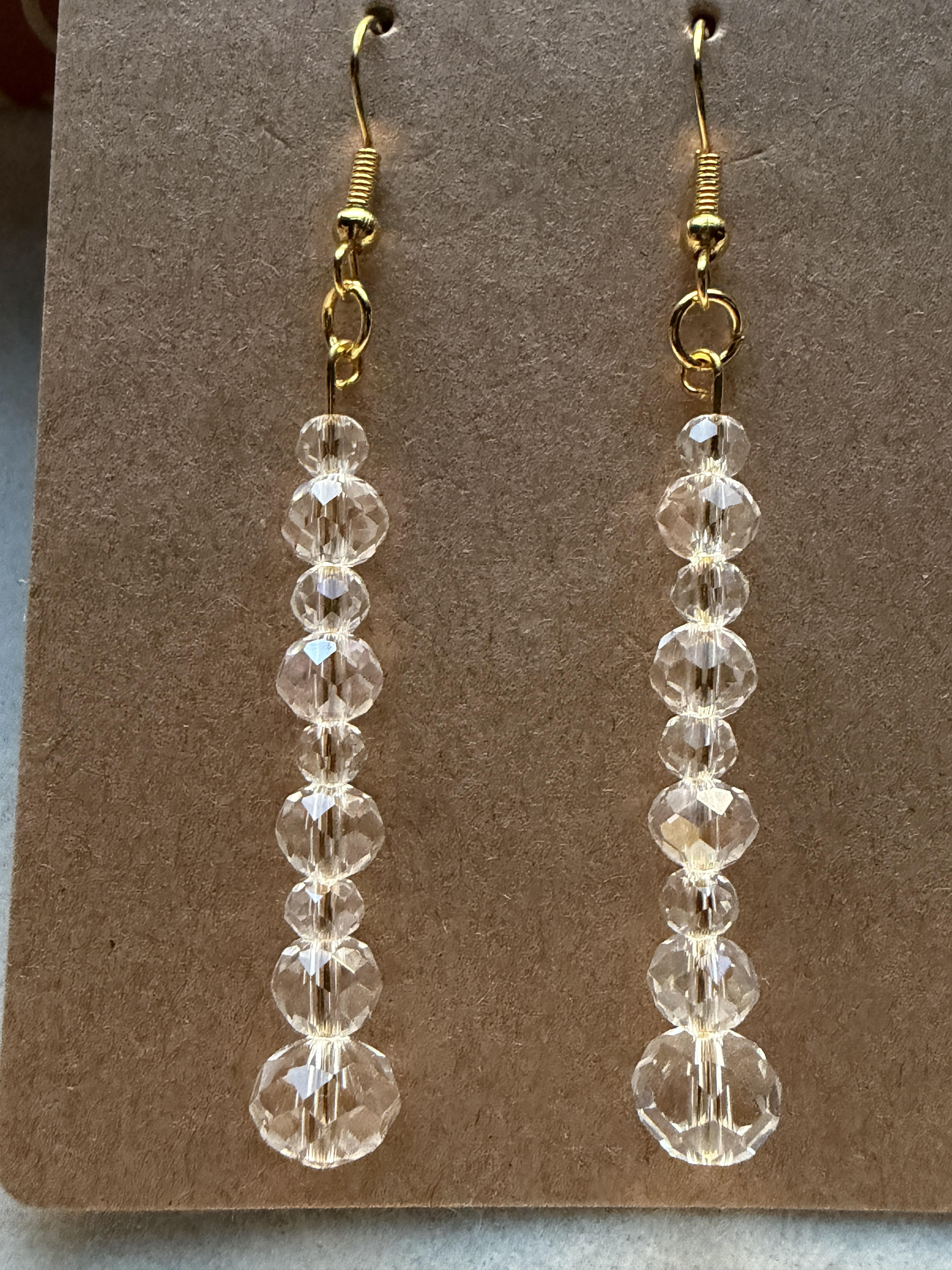 Handmade Small/Medium/Large Clear Crystal Beaded Earrings on gold hypoallergenic posts with rubber backing Style# 006