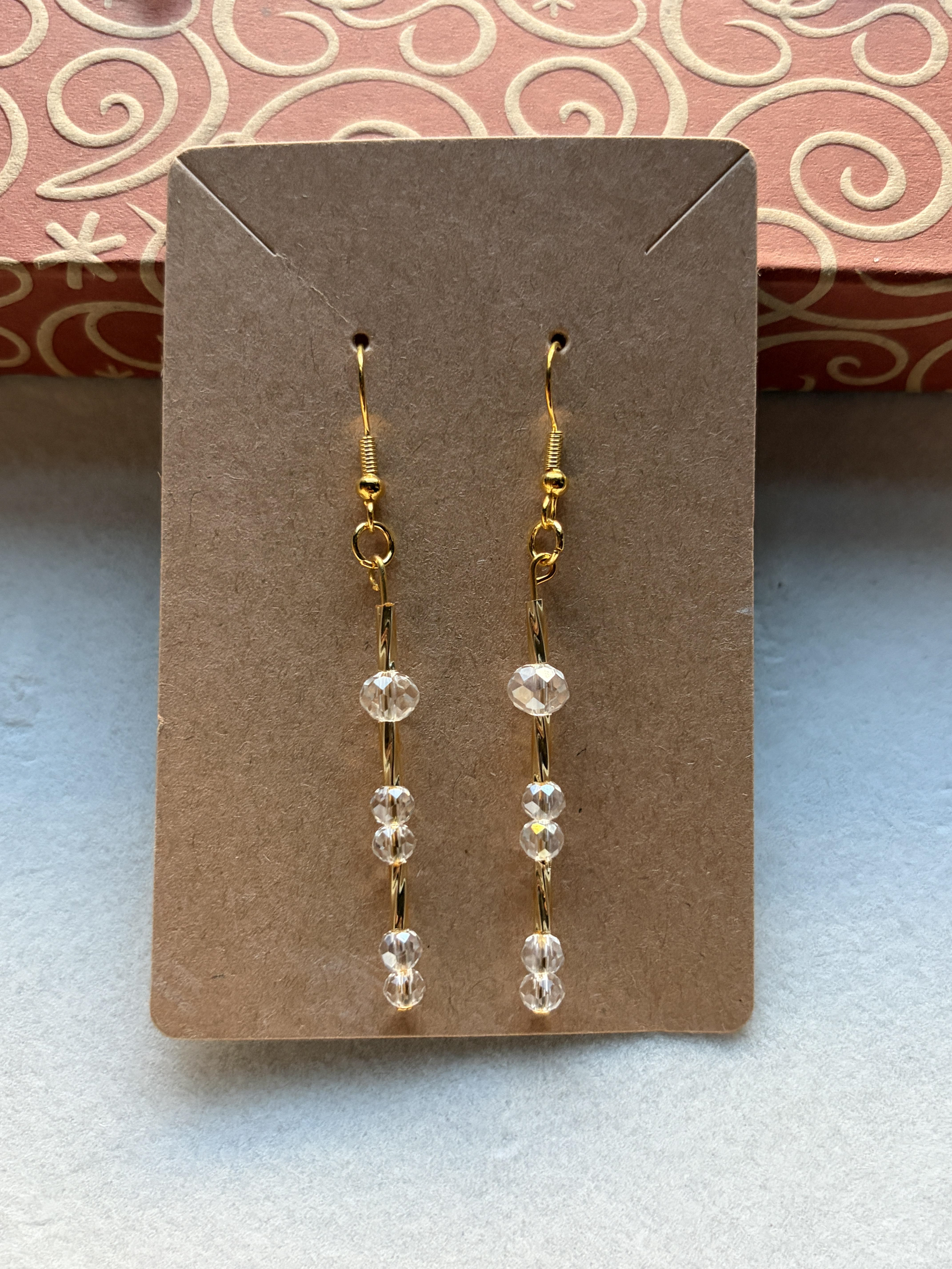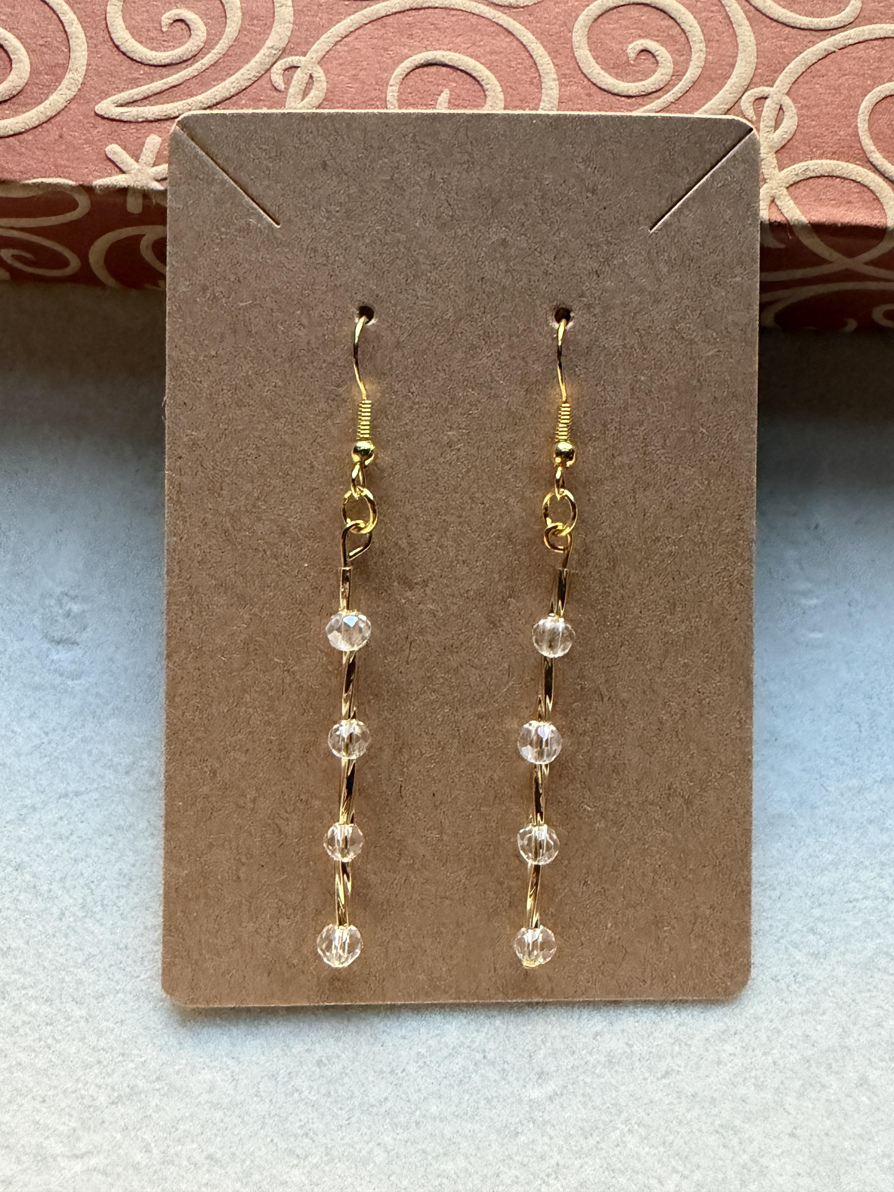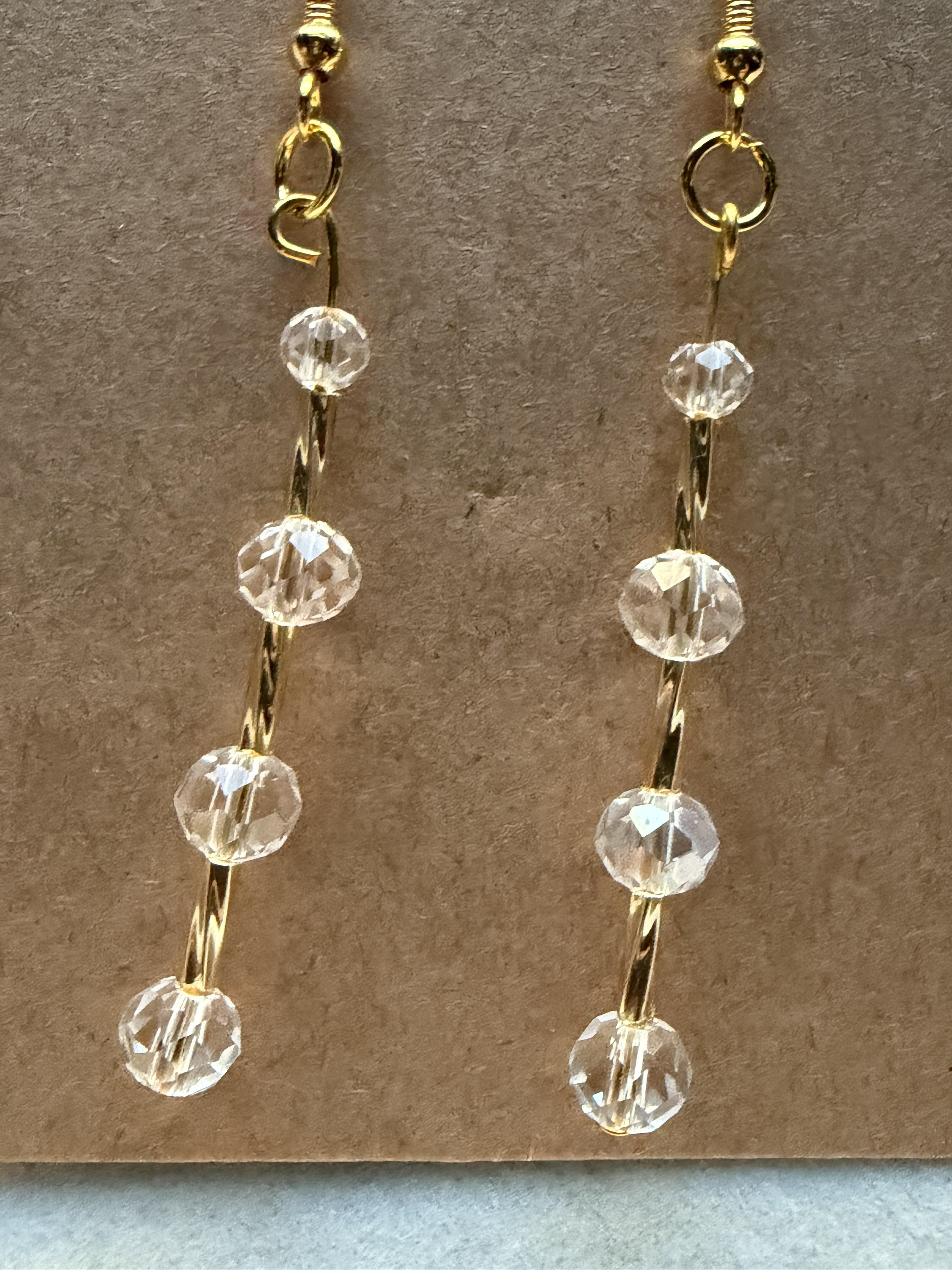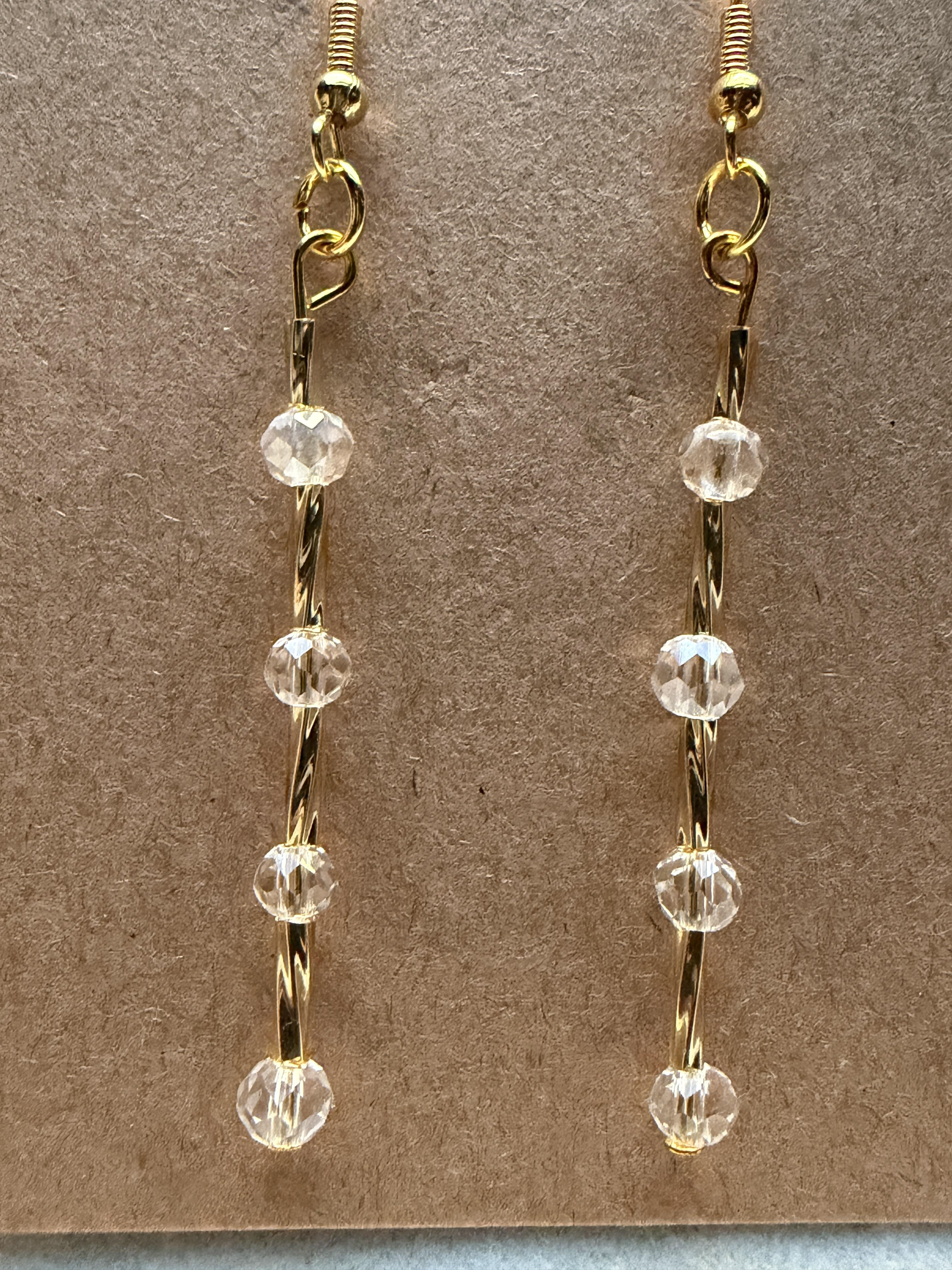 Handmade earrings with small crystal clear & gold embellished beads on gold hypoallergenic posts with rubber backing Style# 004