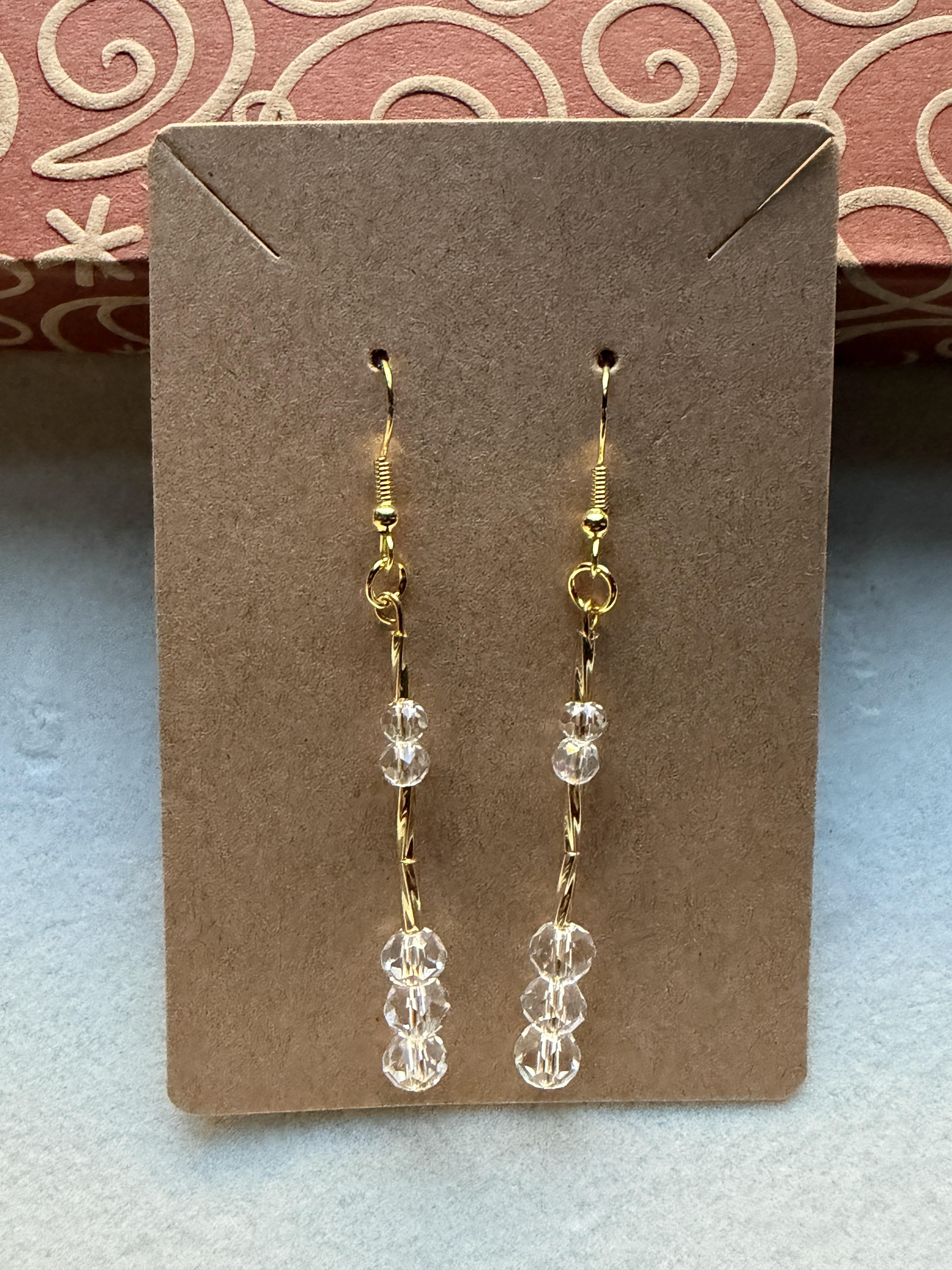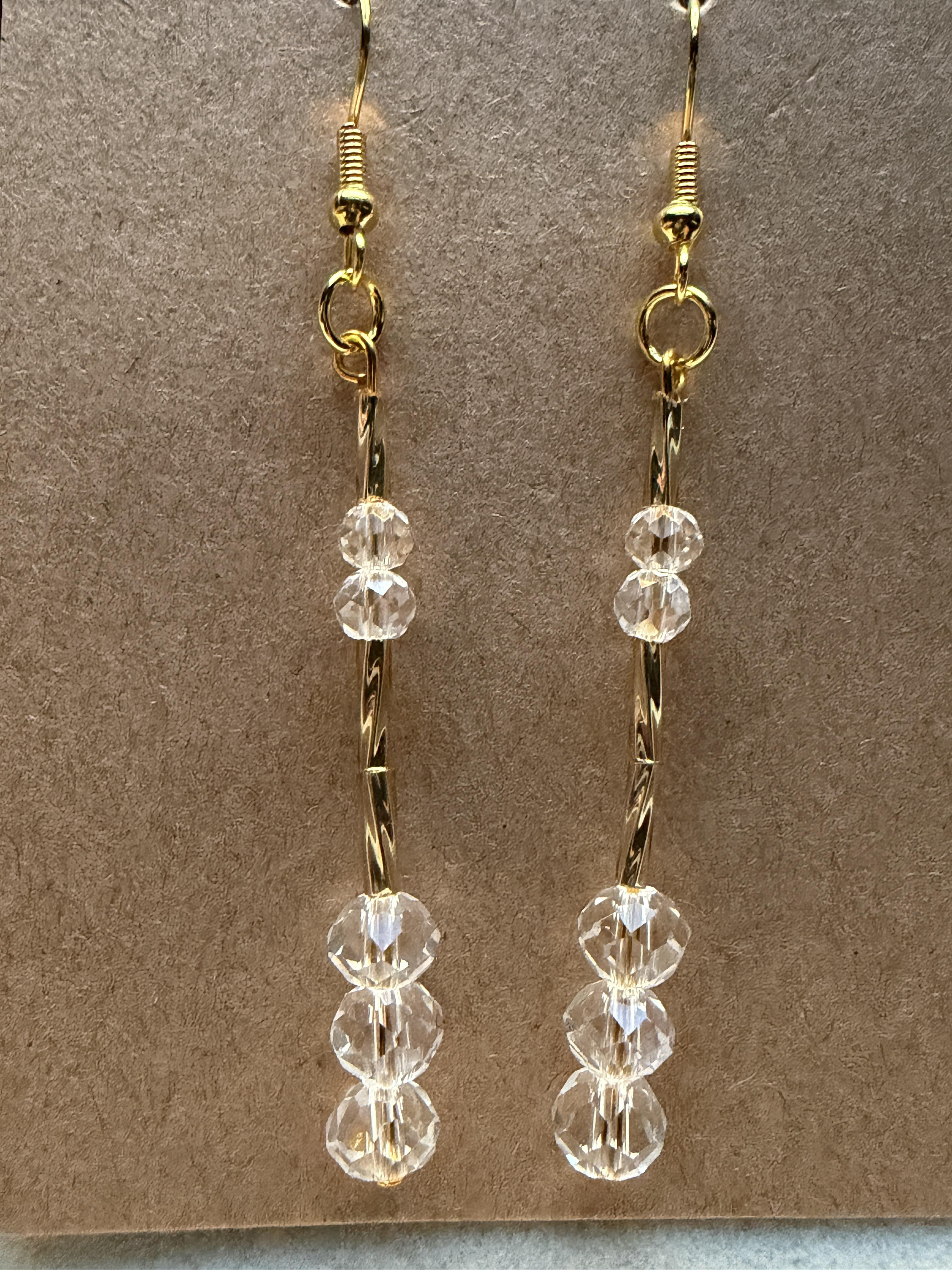 Handmade Small/Medium Clear Crystal & Embellished Gold Beaded Earrings on Gold hypoallergenic posts with rubber backing Style# 025