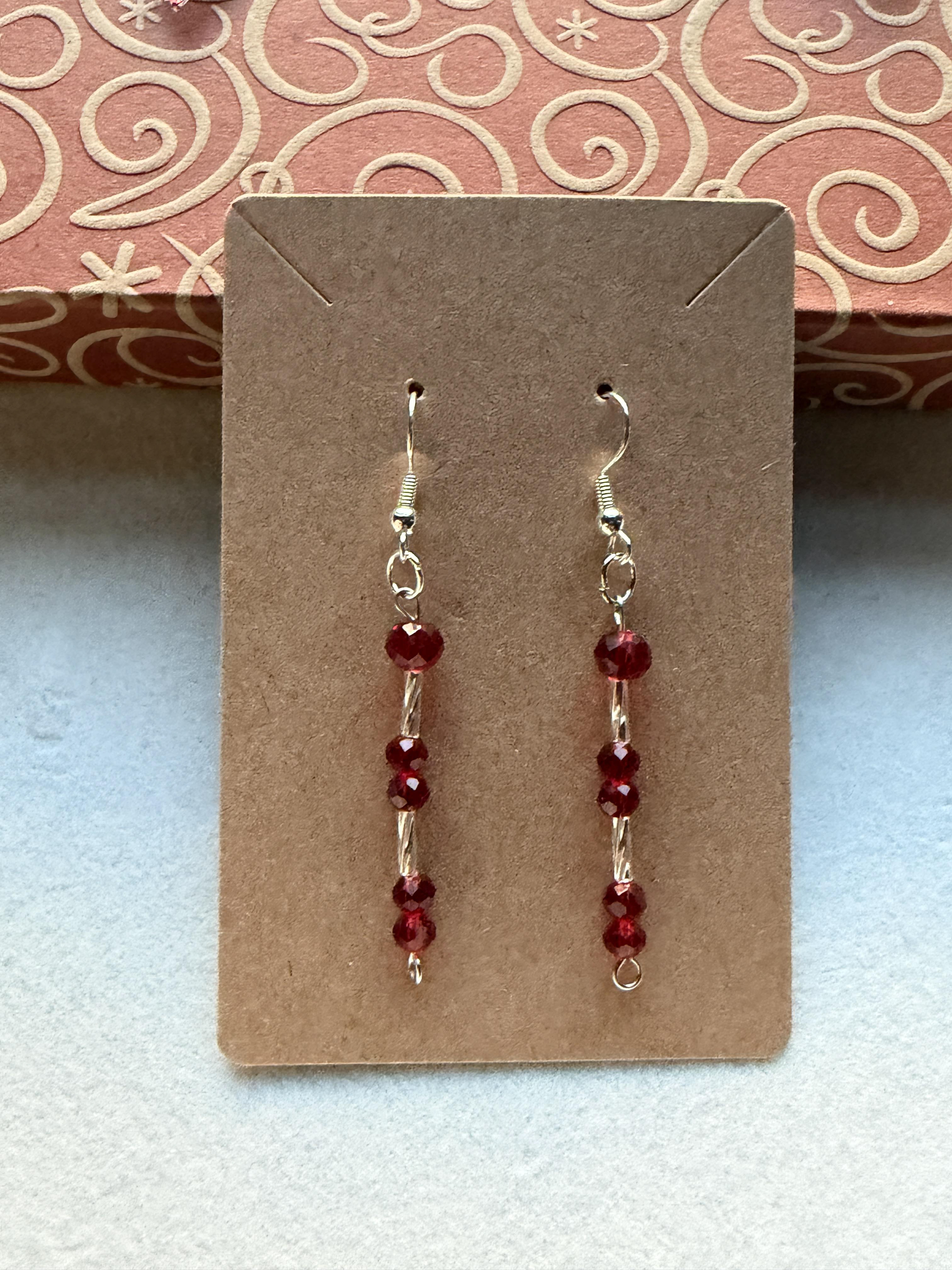 Handmade Silver Embellished & Crystal Red Small/Medium Beaded Earrings on silver hypoallergenic posts with rubber backing Style# 011