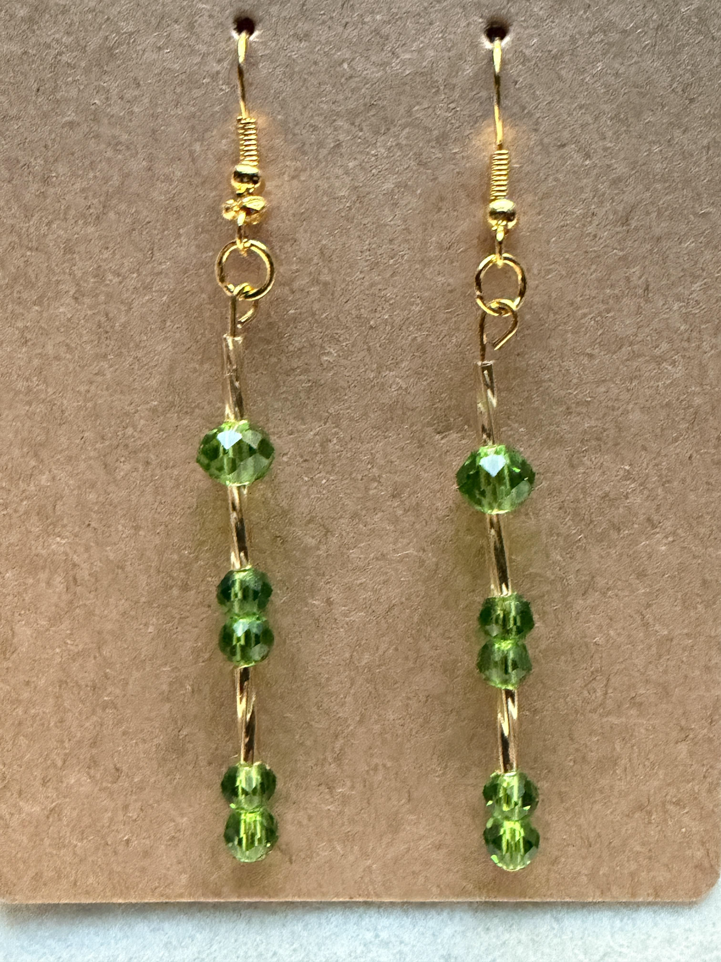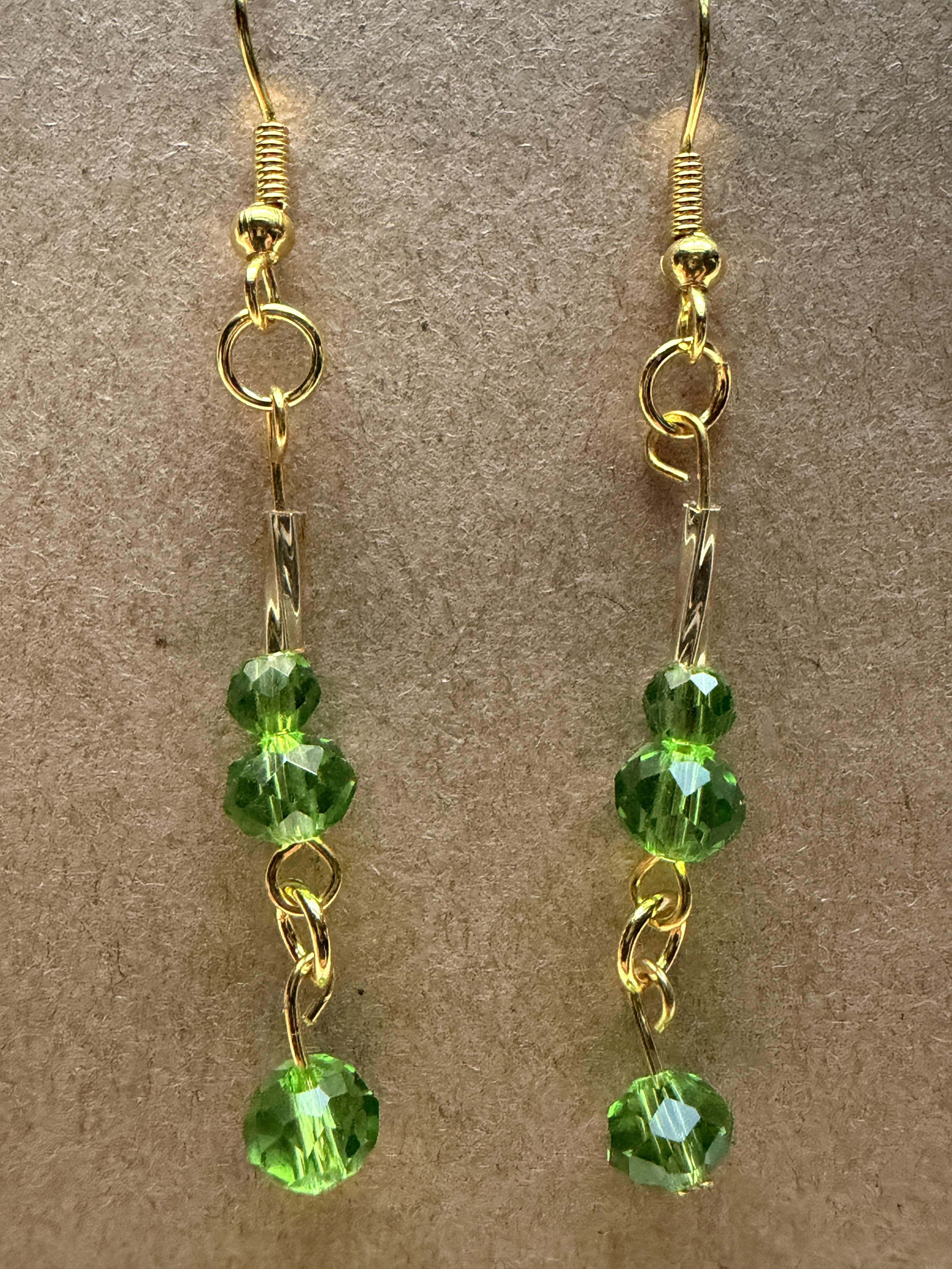 Handmade earrings with crystal green beads on gold hypoallergenic posts with rubber backing Style# 002
