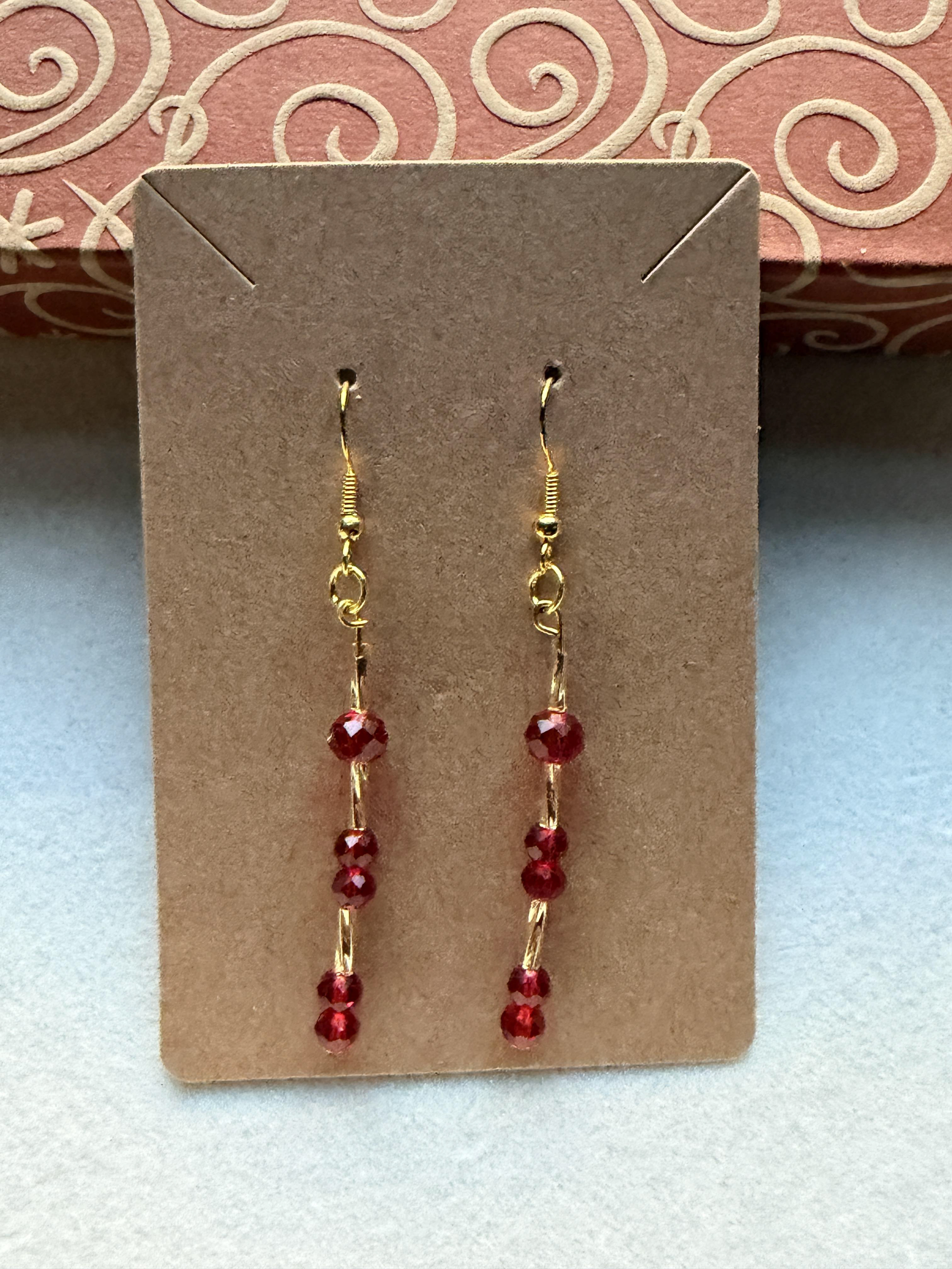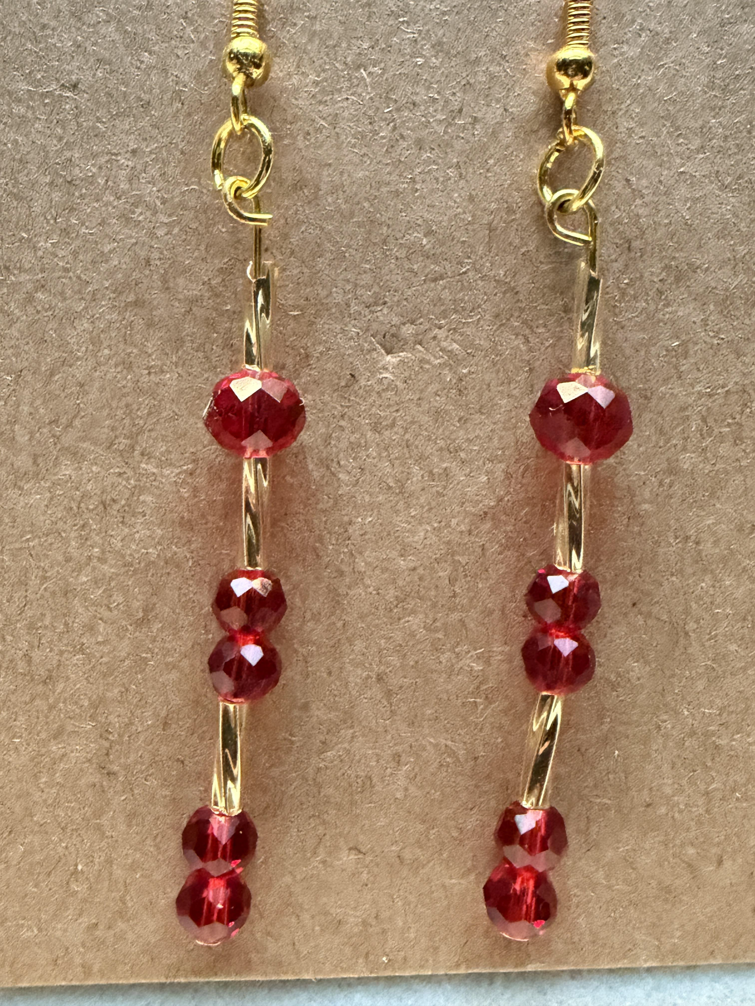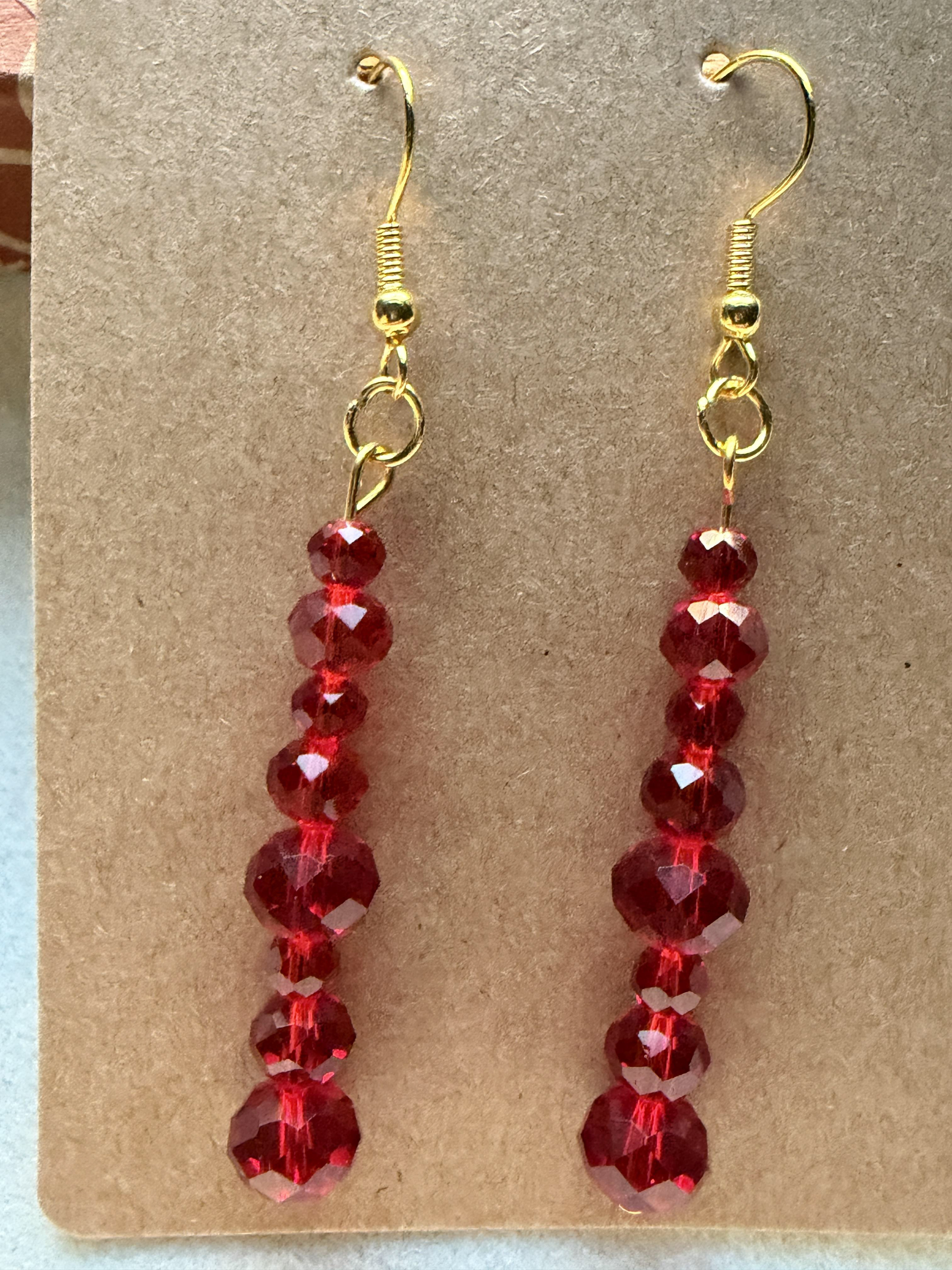 Handmade earrings with small/medium/large crystal red beads on gold hypoallergenic posts with rubber backing Style# 003