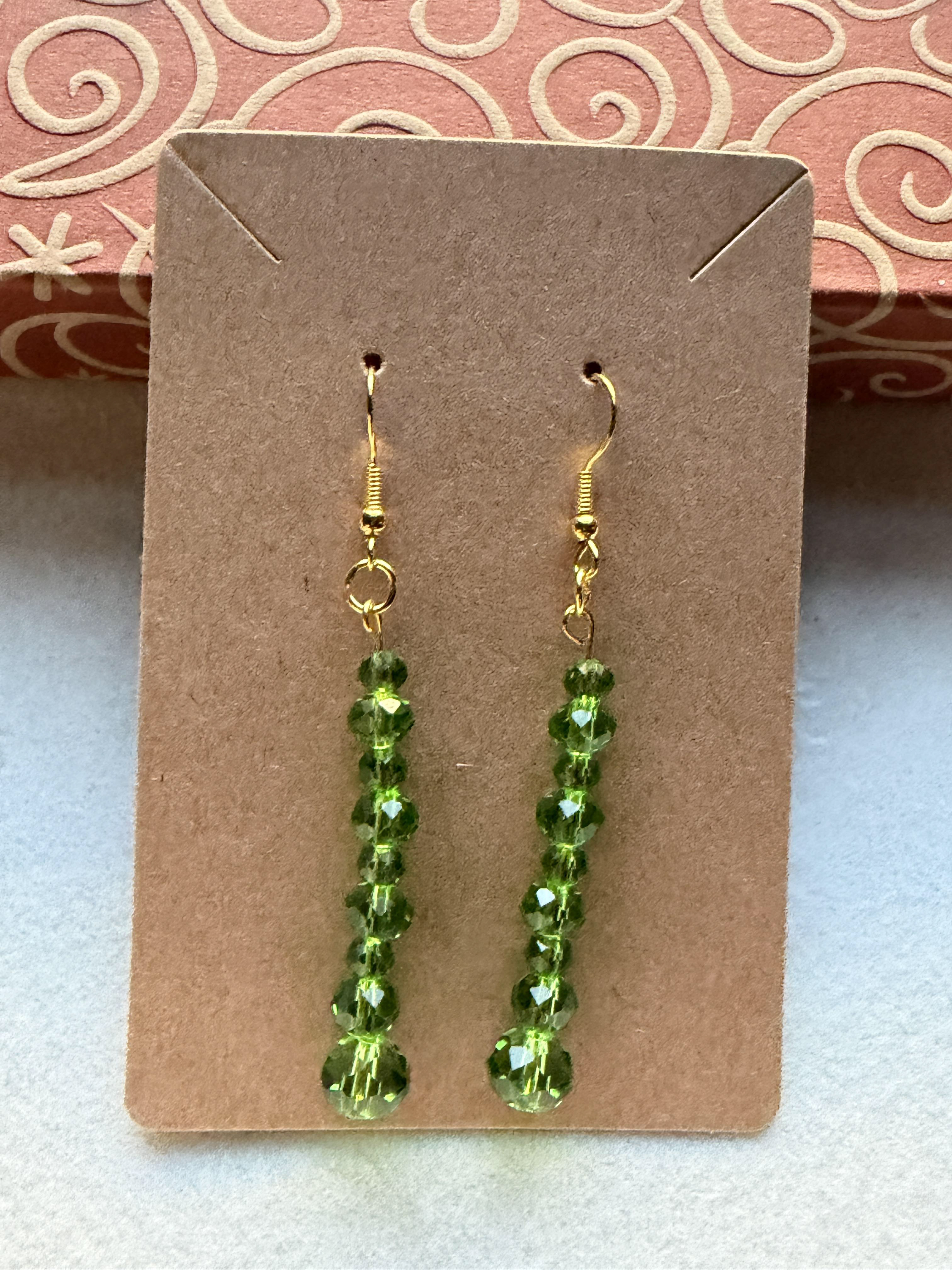 Handmade Crystal Green Small/Medium/Large Beaded Earrings on gold hypoallergenic posts with rubber backing Style# 012