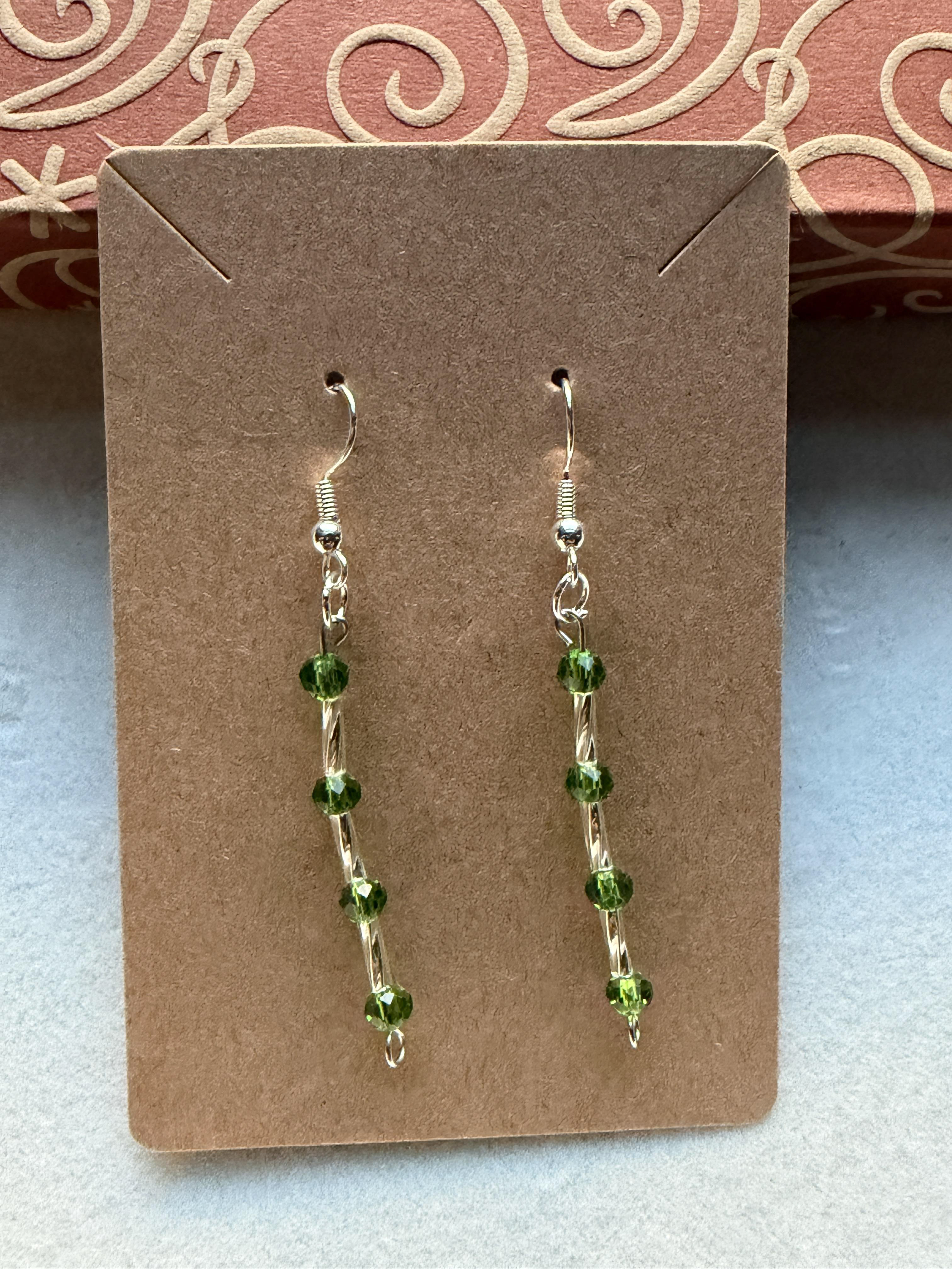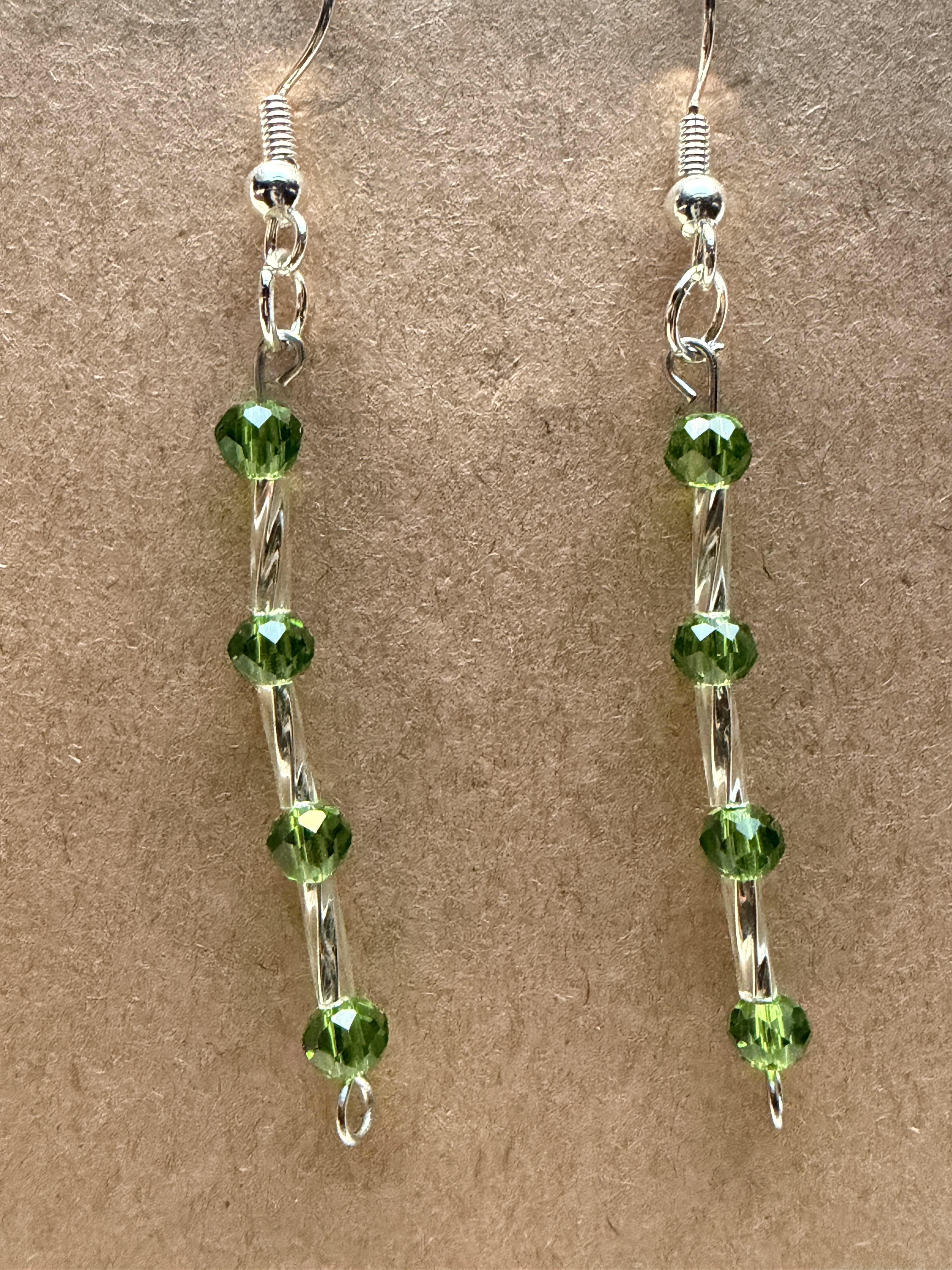 Handmade Medium/Small Green Crystal & Embellished Silver Beaded Earrings on Silver hypoallergenic posts with rubber backing Style# 021